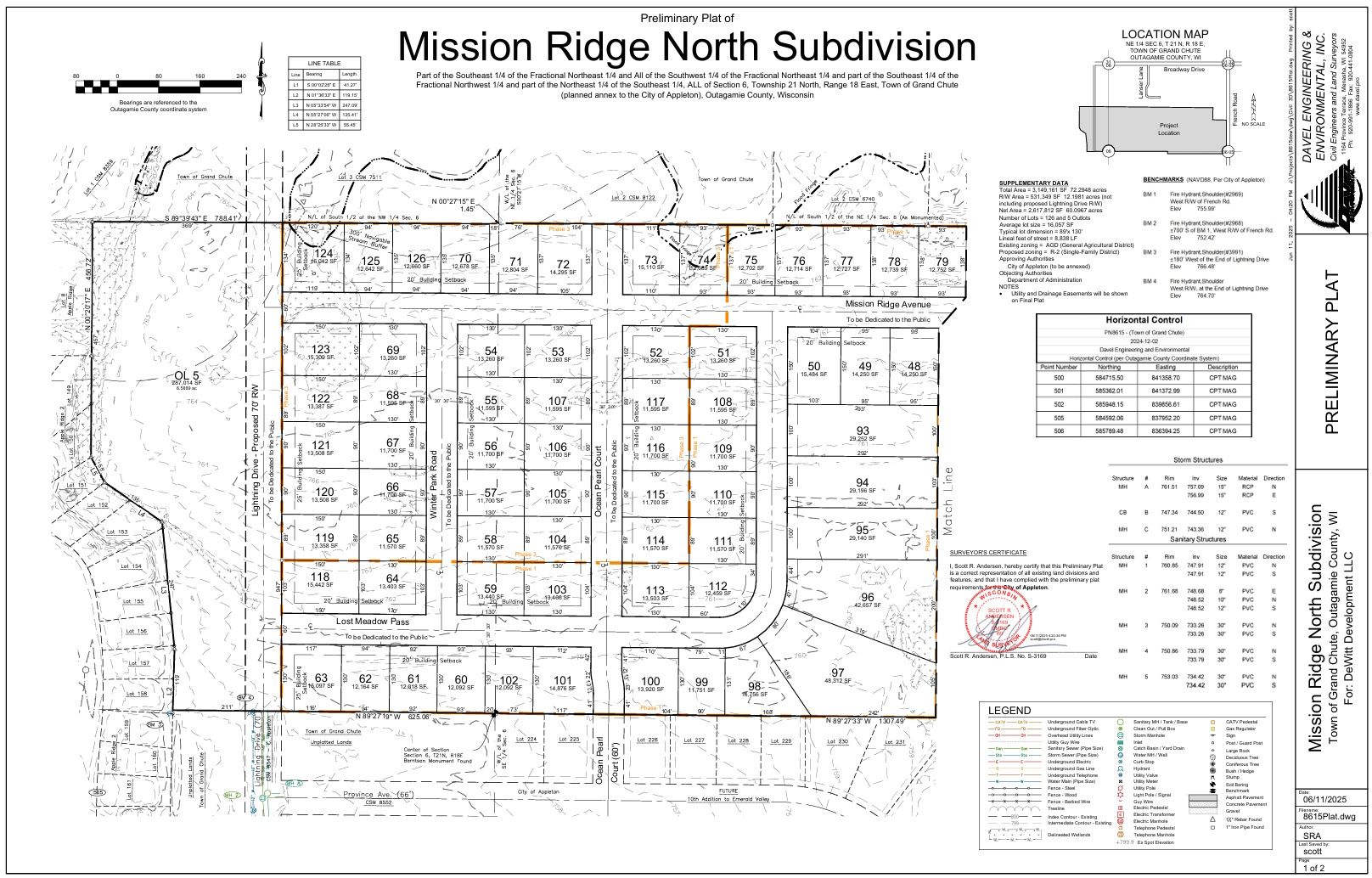 MISSION RIDGE NORTH PRELIMINARY PLAT – This site consisted of 3 parcels that were annexed into the city in May of 2025 and rezoned to R-2 two-family in June. The preliminary plat for the development consisted of 126 residential lots and 5 out lots which would be use for storm water facilities, potential trains, and possible future residential development.